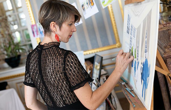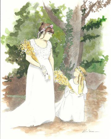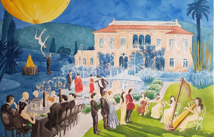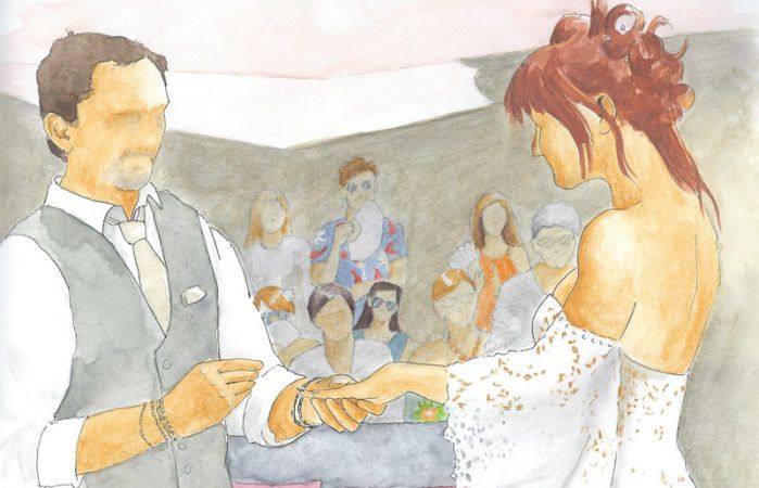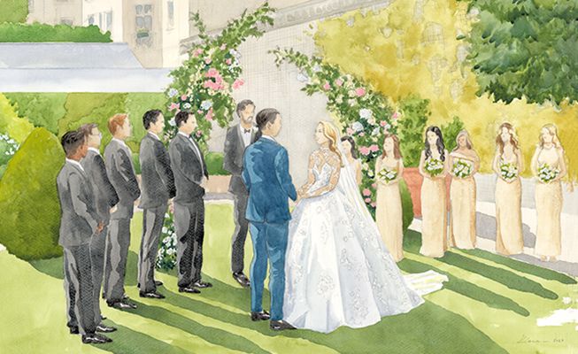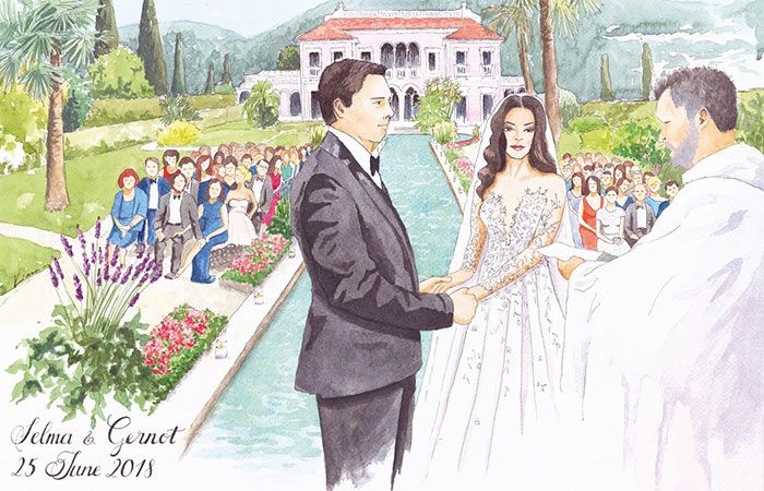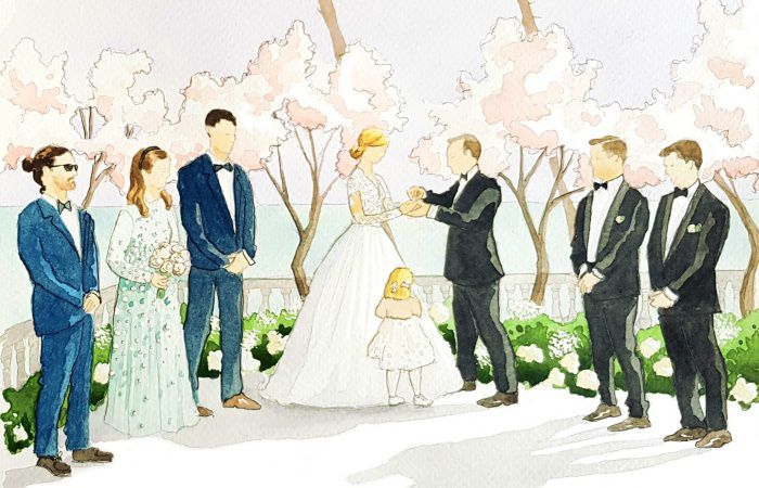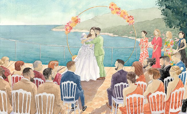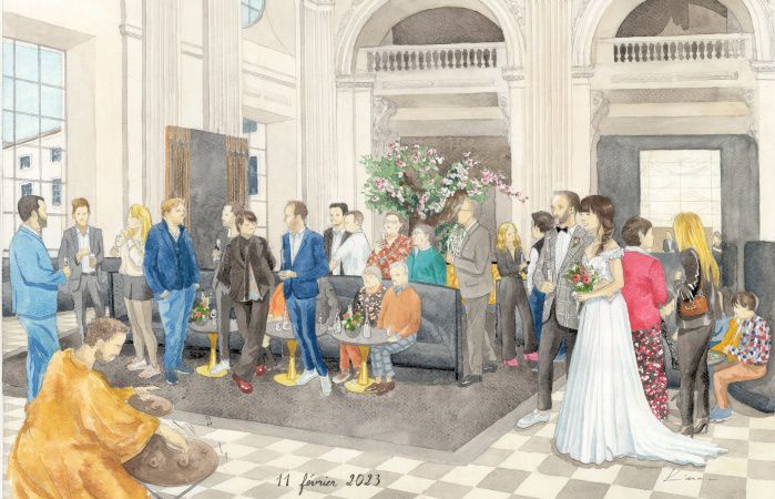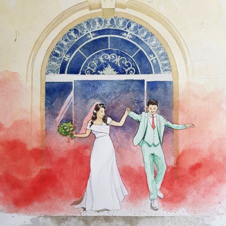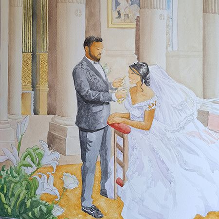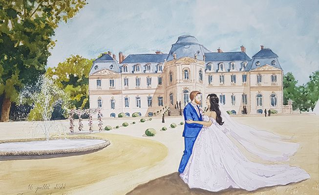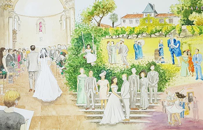" I wanted to amaze the newlyweds, by offering them a unique and original present … and I met [her] during an exhibition! A truly talented artist! She has proposed me to paint all the important moments of the wedding in watercolors, and to group them in an album that I would offer to the newlyweds… I had finally found THE original and artistic gift that I was looking for! The result was magnificent, touching and unique! [She] creates watercolours with her very personal own style and signature. She establishes harmony between her painting and reality. Offering an original painting, in which we can relive those moments of happiness through the artist’s eyes, is something unique! "
