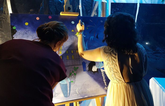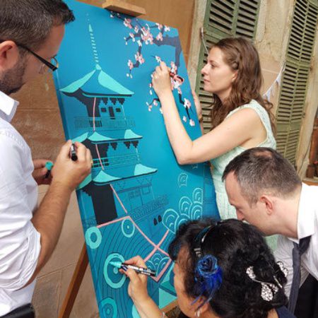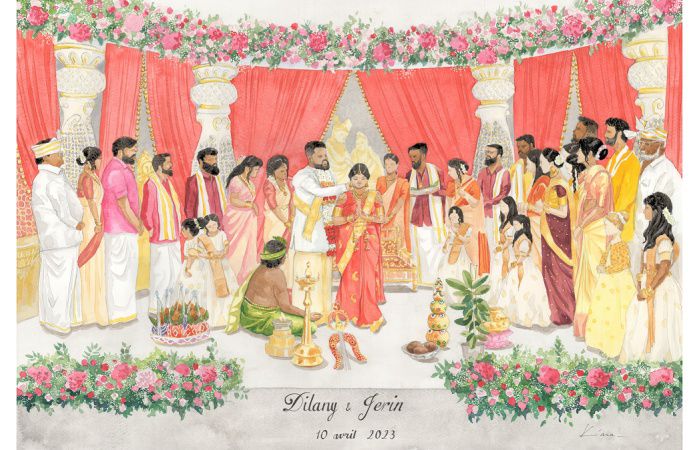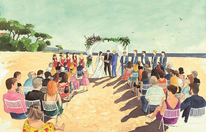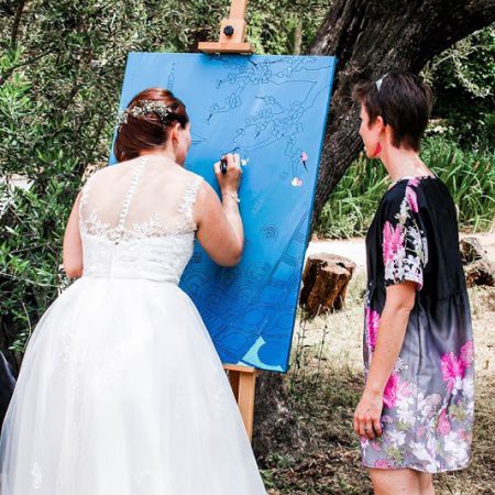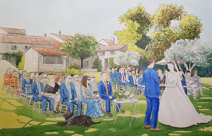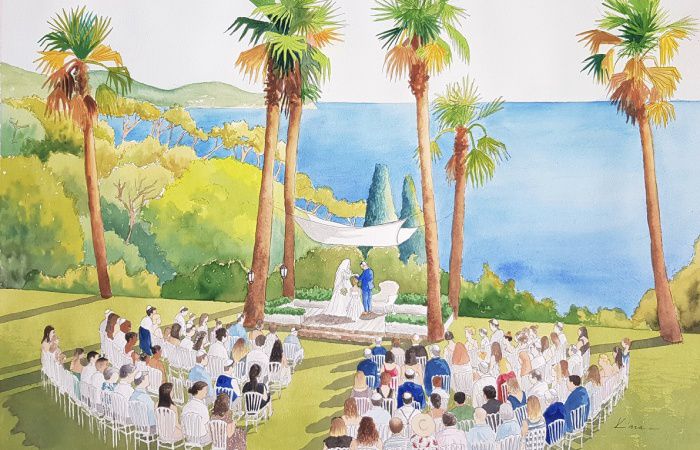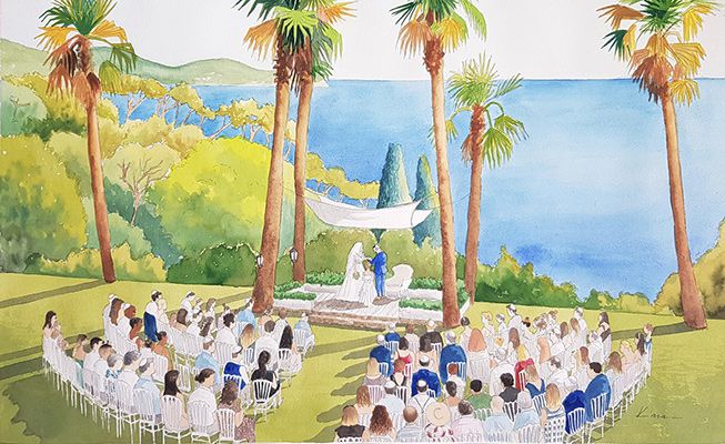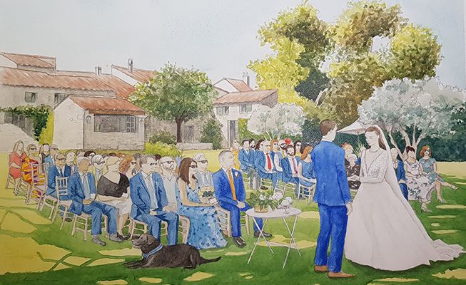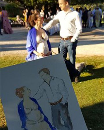 " What an originality! We are used to see photographers, sometimes caricaturists, but in this case … it’s a real novelty! [She] draws the wedding, capturing key moments and emotions are there! I recommend that, as an ideal wedding present! "