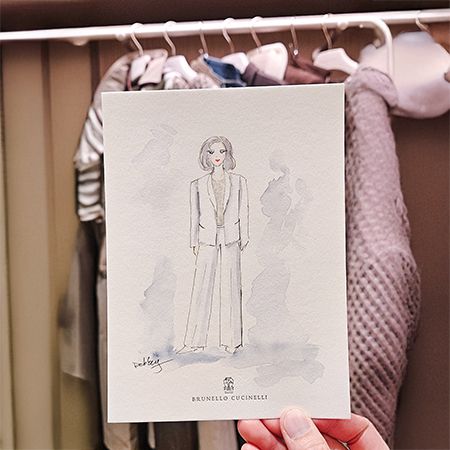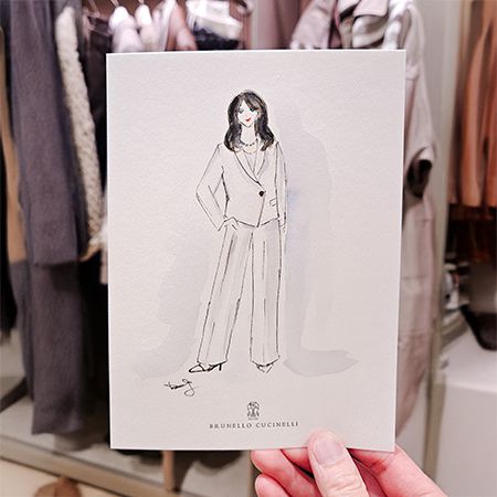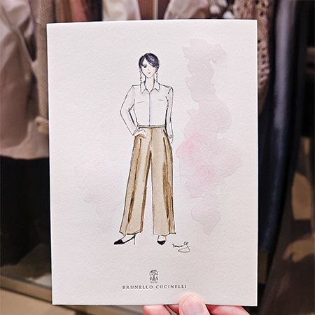 Working with branded paper featuring event logos, names, dates or other details, this fashion artist makes each sketch a personalized memento