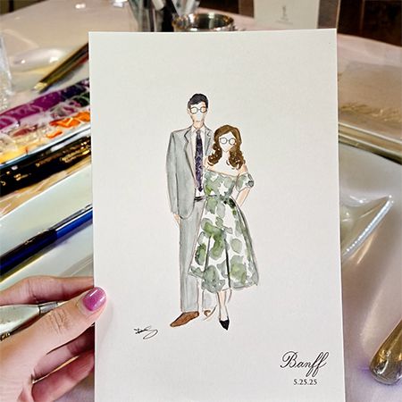 This event fashion illustrator enhances weddings, parties, and corporate events with live portraits that guests can take home as beautiful keepsakes