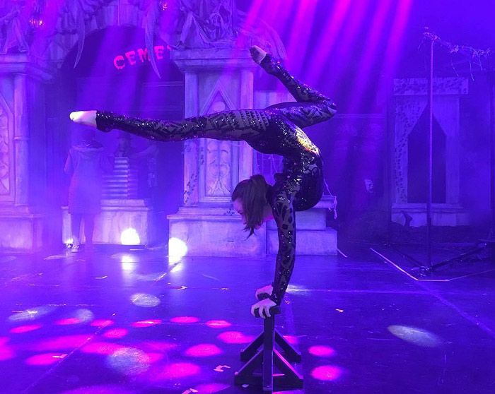 The Female Acrobat and Contortionist has participated on Britain’s Got Talent and performed on several TV shows including the X factor Arabia live finals and on stage at the MOBO Awards and appeared in the film Wonder Woman and then Frankenstein Chronicles. Our female contortionist has performed for HRH Queen Elizabeth II at a P&O Cruises Britannia launch and booked as a female acrobat for catwalk of the London Fashion Week.