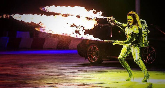 The female fire dancers’ fire acts have wowed audiences all over the world at destinations such as Seychelles, Qatar, Cannes, Los Angeles, Saudi Arabia, Austria, Albania, Croatia and Dubai. They have extensive experience delivering high calibre fire acts for arena shows, sporting events festivals, televisions shows and private parties. Previous booking have come from the likes of ITV, Formula 1, Top Gear, Rimmel London, Top Shop, Festival De Cannes and The Gadget Show.