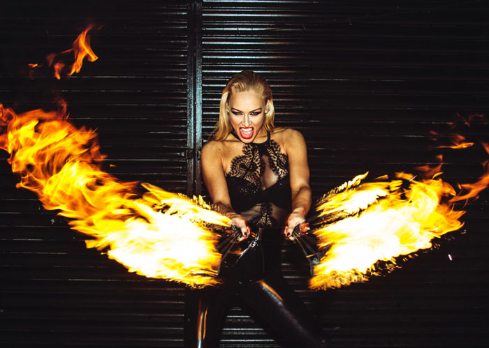 The female fire dancers are stunning and hugely talented sassy and edgy looking fire entertainers dressed in cheeky but sophisticated black costumes. The costumes and girls alone are enough to captivate an audience’s attention. When it comes to fire entertainment, the female fire dancers are the best in their field. With an almost unlimited array of props such as poi, rings, canes, swords, whips, crowns, staffs, fans as well as countless other incredible fire acts, if it’s a flame-based show or adrenaline heavy fire entertainment you’re after, these fire performers are miles ahead of their competitors.