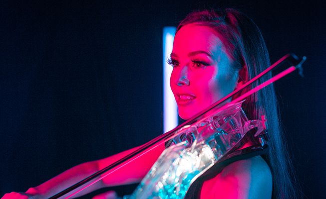 Able to perform alongside a DJ, this LED violin player turns any celebration into an electrifying, high-energy party environment