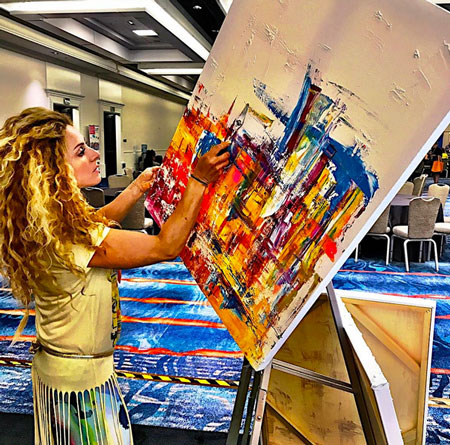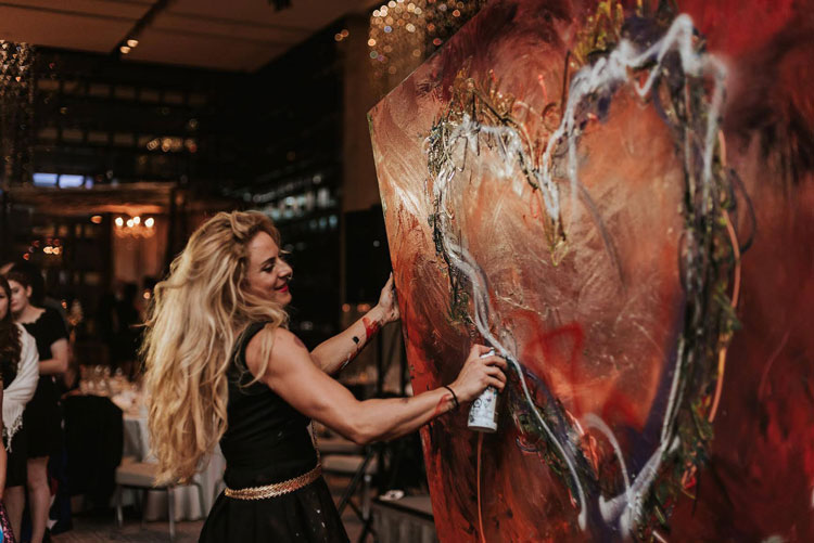 Having painted professionally for over 15 years, this marvellous female event artist has commissioned thousands of paintings as well as amassing eight collections and performing live painting shows at hundreds of global events.