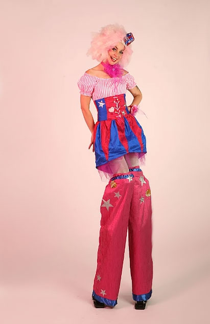 Wonderful female stilt walker with a vast range of themed costumes