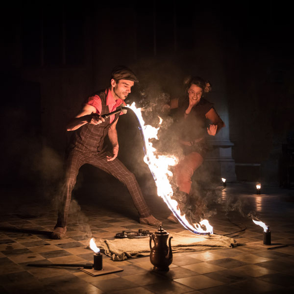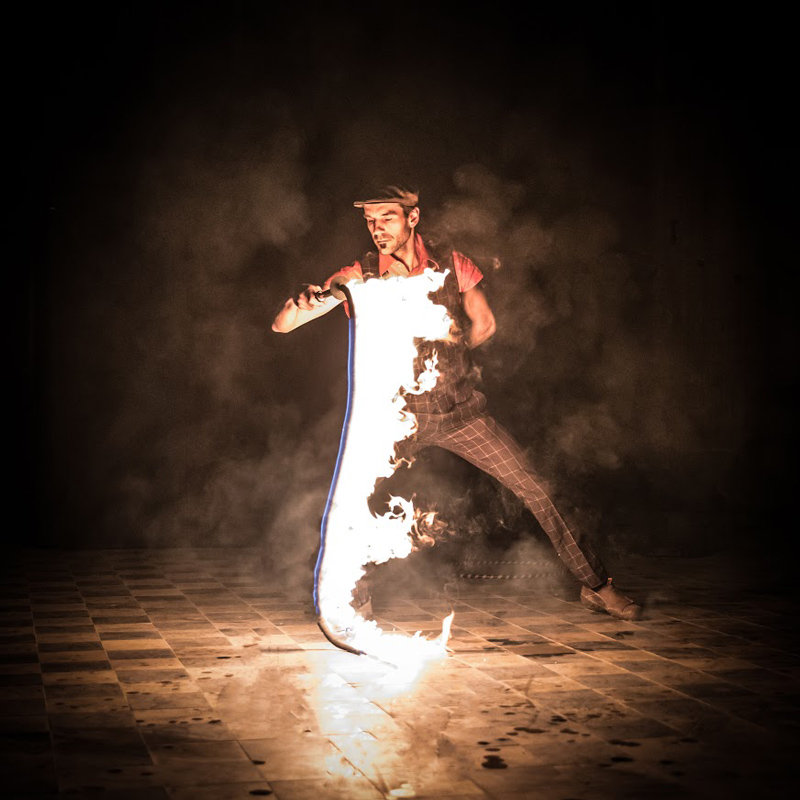 Especially suitable for dark environments, this fire dance show is a popular dancing with fire spectacle for after dinner experiences, galas, open-air events, promotional events, etc. Also a popular request among brides and grooms, these fire manipulation specialists’ show is an in-demand act for receptions.