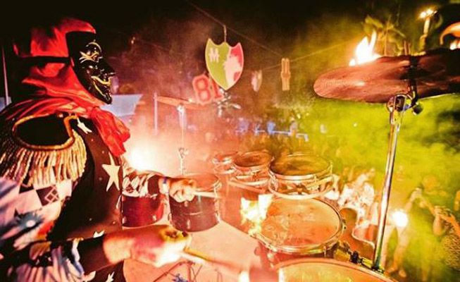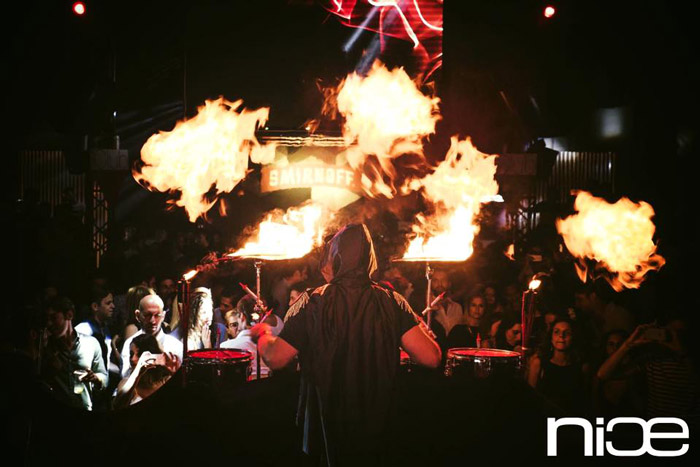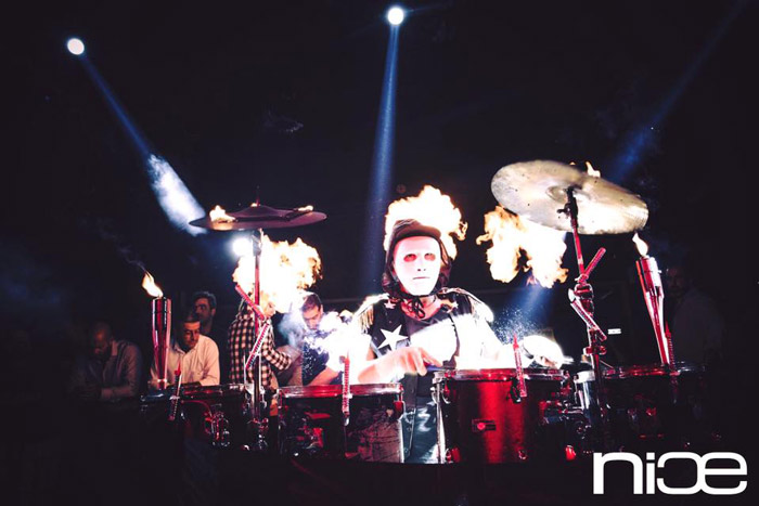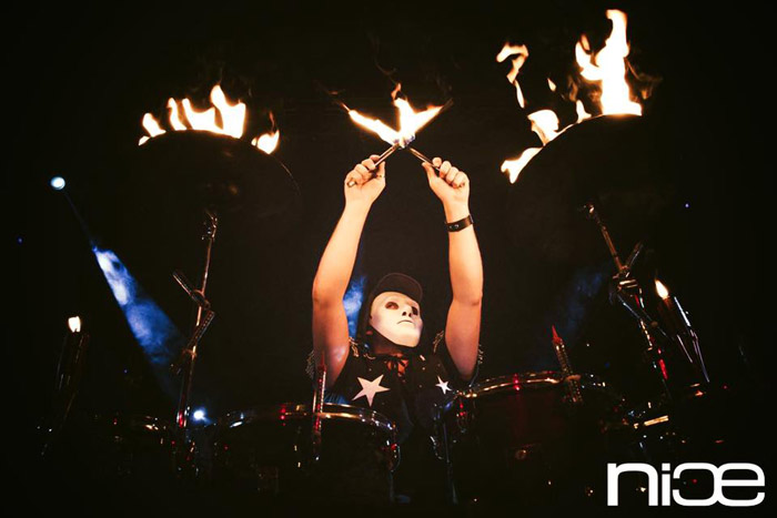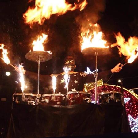 If you don't want your entertainment with fire, this drummer also has some visually captivating live LED drum options to choose from.