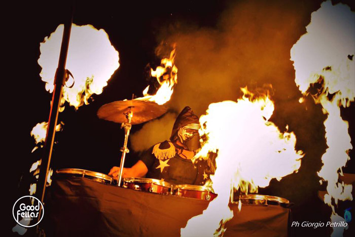 The Fire Drummer Italy is able to tailor his appearance according to client preferences or event themes. The unusual percussionist has a wide range of fascinating costumes, masks and capes. This is a fire performer with a difference who manages to bring daring excitement to live music. The fire drummer sets alight to his drum kit before pounding beats, using flaming sticks, in time with the backing music. If required, pyrotechnics and flame throwers can be incorporated into the show for a full dramatic effect.