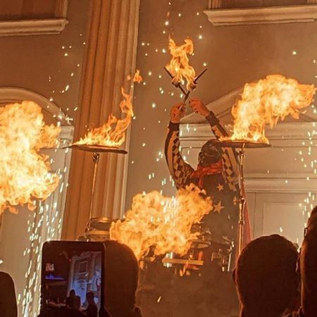 Coming out of the shadows like a masked crusader, our Fire Drummer Italy is an incognito musician and fire performer with a difference who will provide your event with a fire-driven visual and rhythmical show guaranteed to captivate everyone in the room. His live percussion entertainment with fire is guaranteed to turn up the heat at your event as he takes centre stage for a red hot performance.