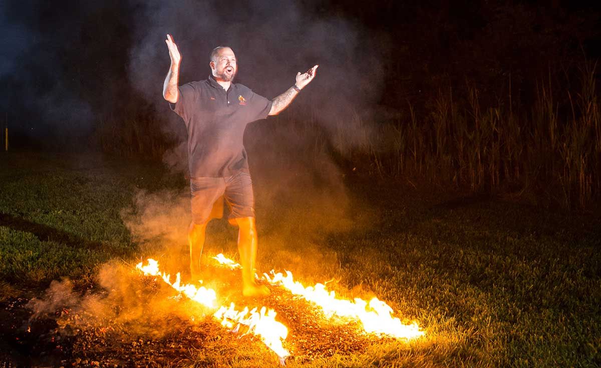 As well as firewalking, this USA-based group can offer glass walking, rebar bending, board and brick breaking, and arrow snapping