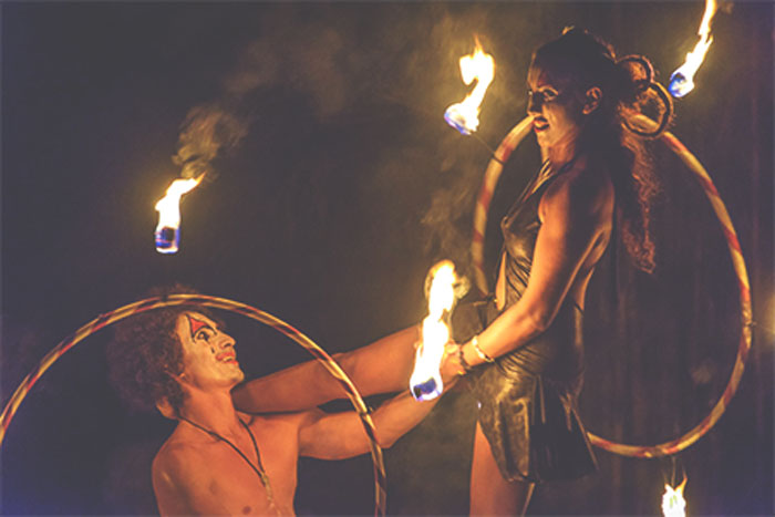 In addition to their fire performance they can also offer LED performances; mesmerising daytime performances with a fun repertoire of hoop skills and manipulation; and workshops and classes, which are perfect for corporate incentive days.