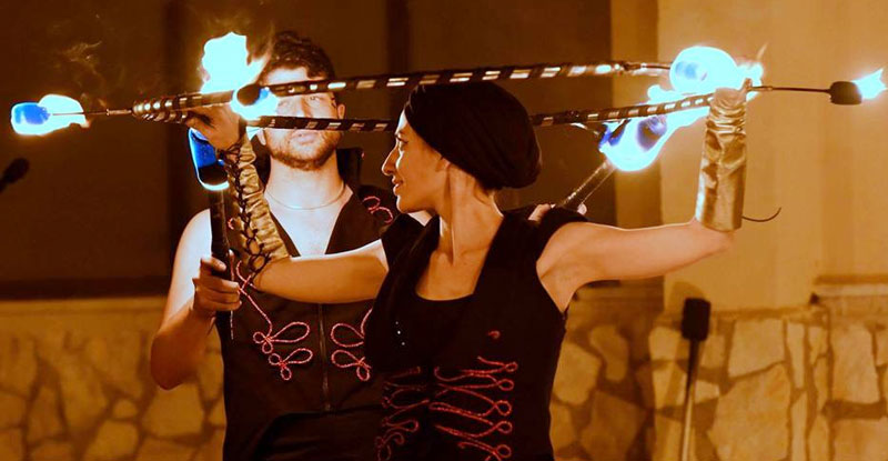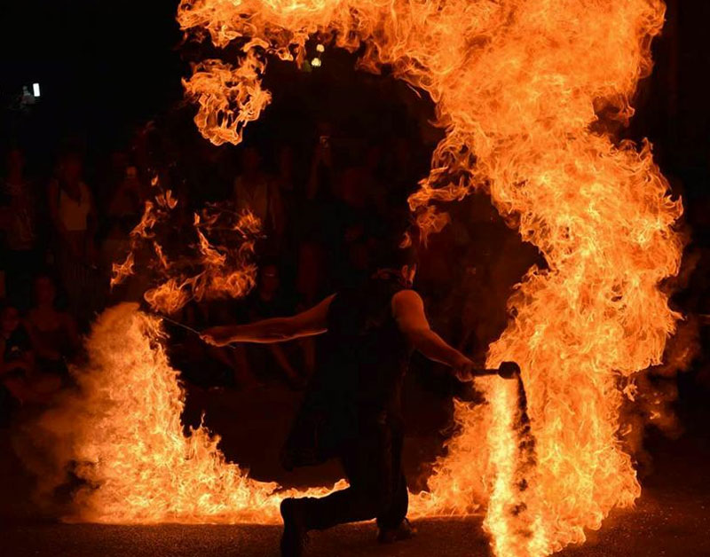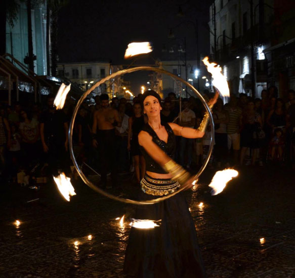 Street Fire: a fire dance show that was born from the union of our Italian fire performers, this performance is the result of shared experiences and artistic ideas. Specialising in various artistic disciplines, our fire dance group are experts at fire manipulation. By using different props and accessories such as fire torches, sticks and fans, our dancers have joined forces to offer show that merges all their talents!