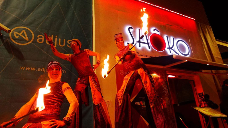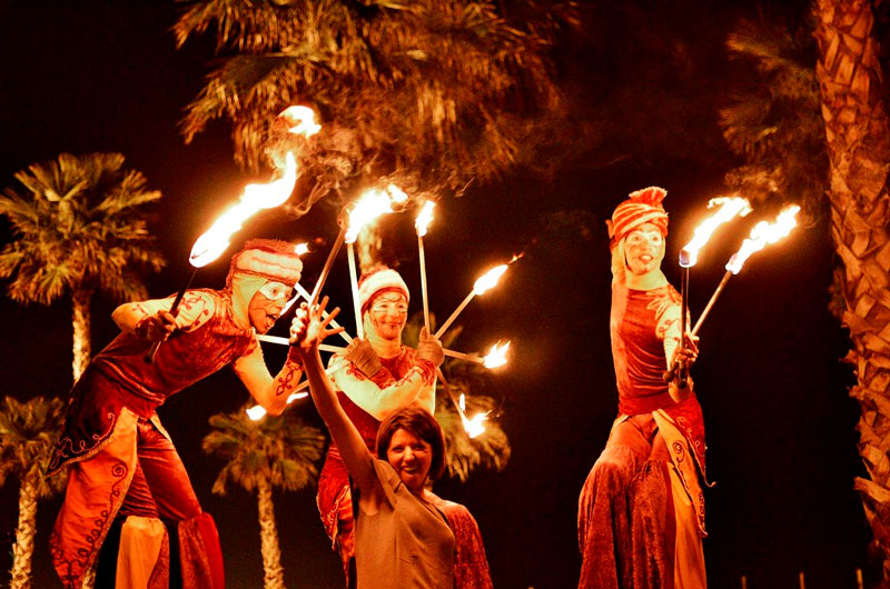 Join our sensational circus performers on an exciting journey! Fusing contemporary circus art and physical theatre, our professional entertainers have developed an exciting fire stilt act that blends fantasy and reality until neither the performers nor the spectators are sure which is which!
