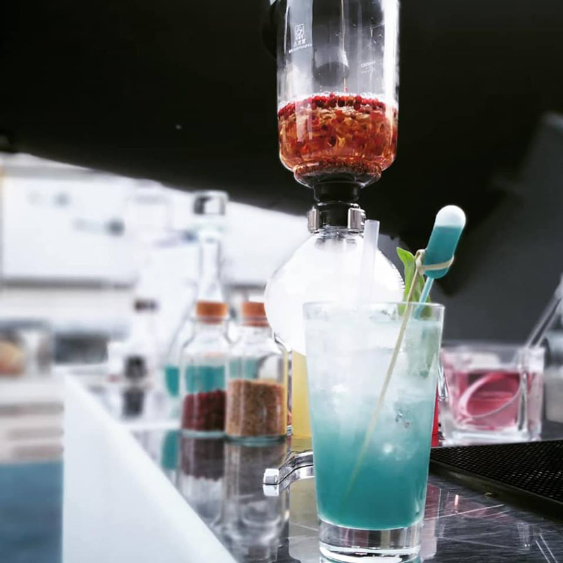 Stylish event mixologists serve delicious cocktails and drinks in a truly unique way