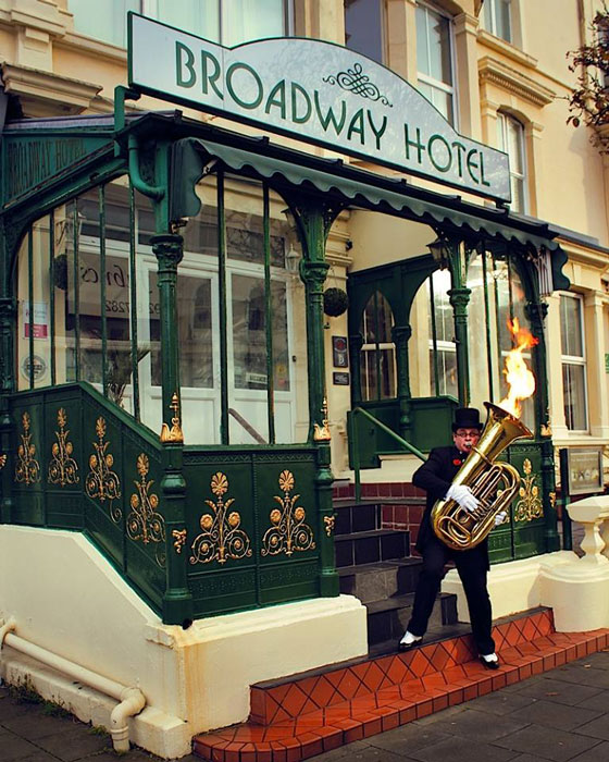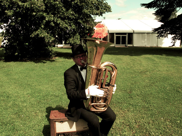 As you would expect, this unusual brass player quicky grabs peoples attention and becomes a much talked about feature of any event. He has gained a lot of recognition for his one of a kind act and even appeared on the Paul O’Grady Show playing a cover of a pop band song.