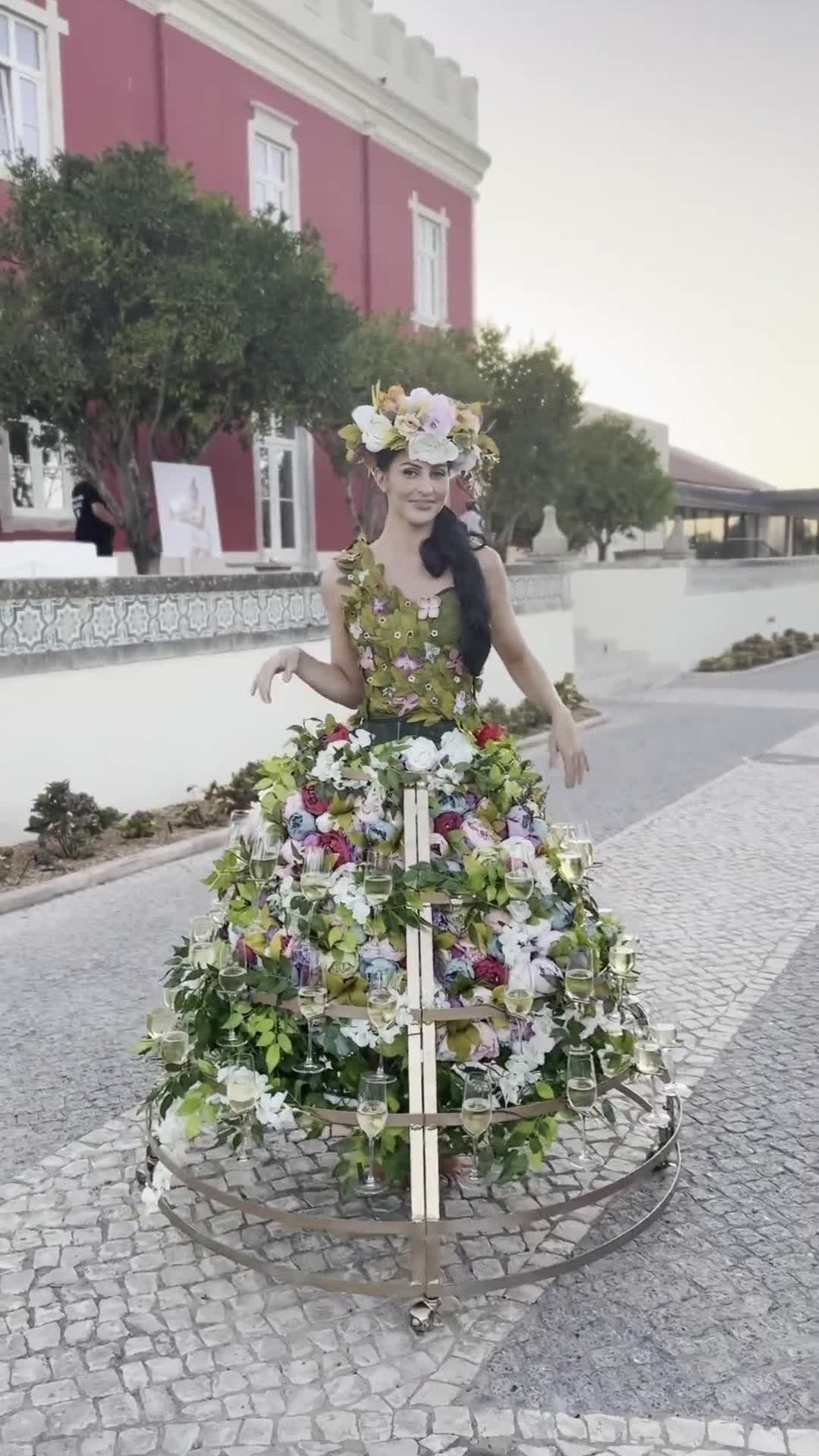 Beautiful floral-themed roaming Champagne dress to serve your guest drinks