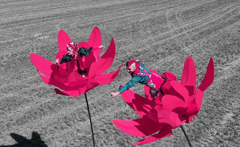 Our duo fuse theatre, dance and circus styles, using their unique flower sway-poles that are perfect for street festivals and outdoor theatres