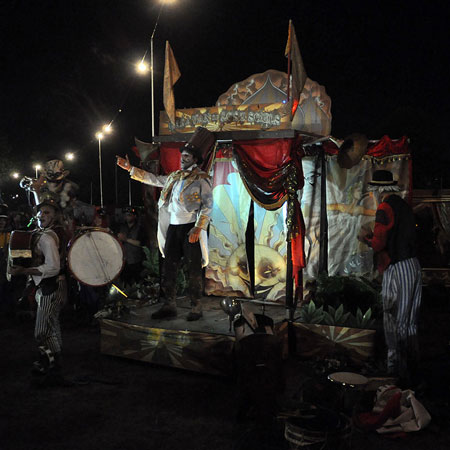 A circus that can quite literally pop into existence anywhere at anytime, the entire stage folds up or down in under two minutes, the perfect spontaneous act for any event that wants a short sharp performance or a full show with minimum clearing up time.