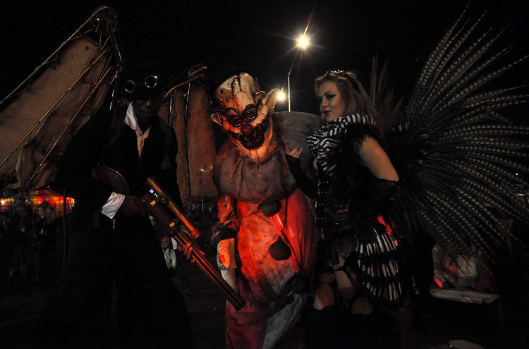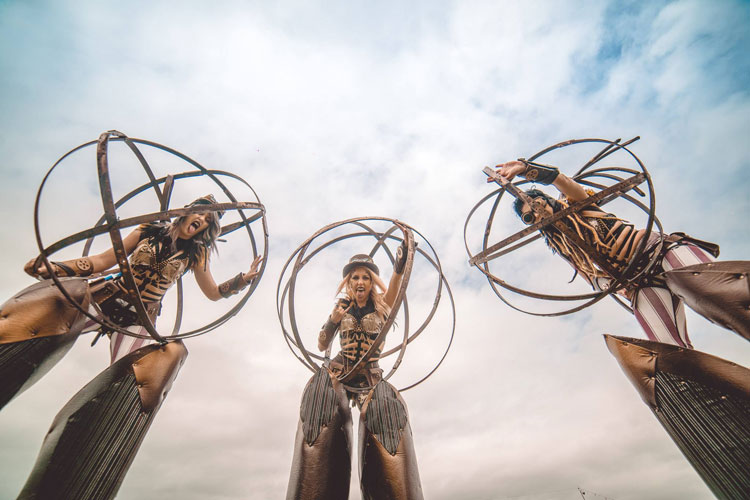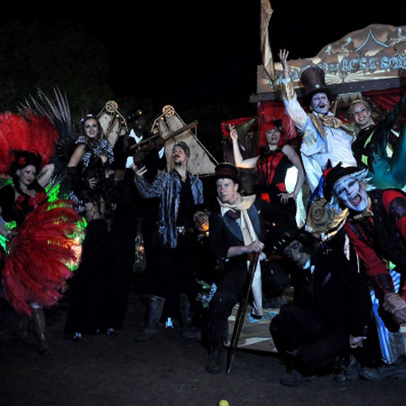 Fantastic as a family friendly daytime parade or as a darker more spookier adult orientated performance this scalable show is completely self contained and can be performed indoors, outdoors, as a walkabout, as a stage show, as ambient sets and more.