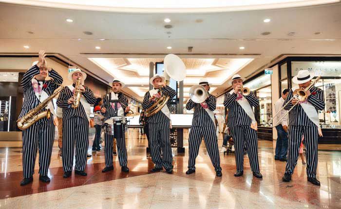 From shopping malls to wedding entrances, this roaming brass band appeals to audiences of all ages