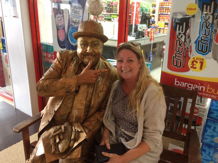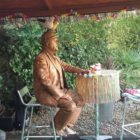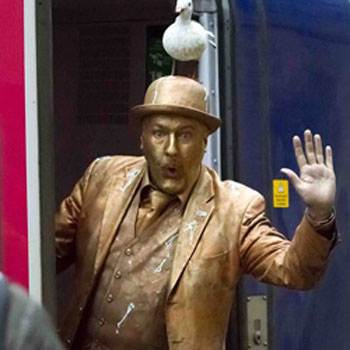 A highly sought after street performer for all sorts of events, our gold man offers a fantastic way to engage guests and ensure that everybody is relaxed and having fun. Often spotted eating fish and chips on a park bench, with a sneaky eagle perched on his head, guests love to sit down next to our statue and pose for a comedy photo.