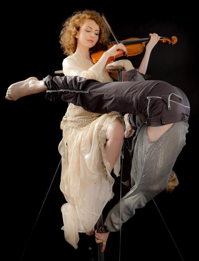 The dancing violin player and hand balancing take place on and around a 190 cm high prop. It is a very impressive combination that will WOW the audience. The elegance, skills and acrobatic strength of the handstand show combined with the energy and live music of the violin player all together in one performance is exhilirating for the spectator. Daniella and Michal from the Czech Republic are highly skilled performers with years of experience.