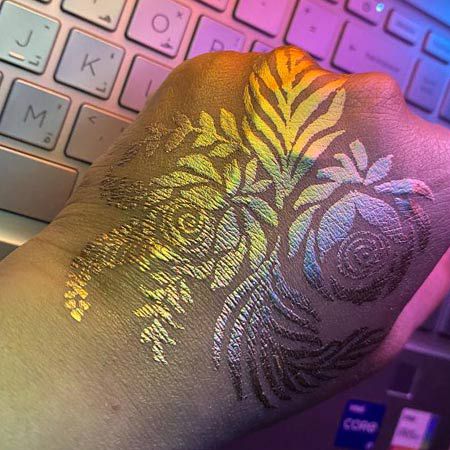 Giving this classic art form a contemporary twist, our artist can use traditional brown henna, white henna or a glamourous gold henna