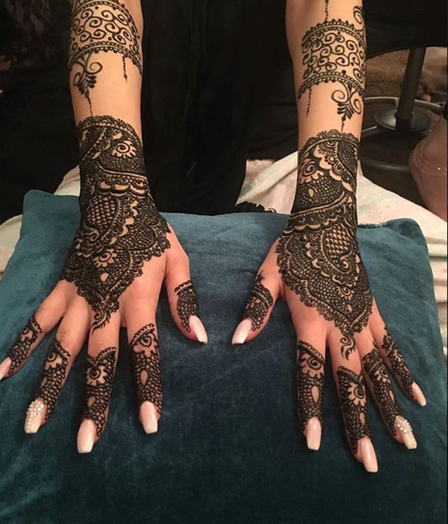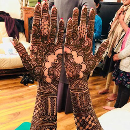 Once applied the henna stain gets darker over 24 - 48 hours so it is advised to book two days before your event, if you are booking for your wedding or for a special occasion.