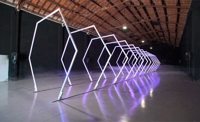 The Hexagon LED Tunnel has responsive colour LED lights and supports video mapping! The metal structure is composed by 12 hexagonal arches