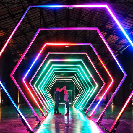 Our Hexagon LED Tunnel has been exhibited at many festivals, quickly becoming the main feature of the event. Suitable for indoor and outdoor use