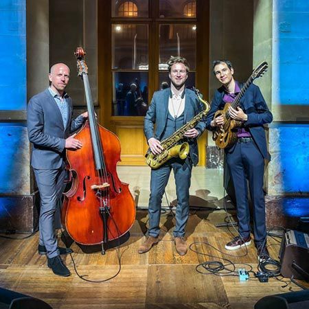 The band give you the choice between an instrumental Jazz line up, ranging from a duo, up to quintet (Double bass – Saxophone / Guitar / Keyboard / drums / Vibraphone, Trumpet) to a vocal group line up with a stunning female vocalist.