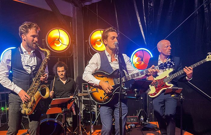 This jazz band performs Jazz favourites, ranging from the 1930s onwards, including songs like beautiful love, fly me to the moon, all of me, have you met miss Jones, as well as jazzy versions of pop hits from the 60s, 70s, 80s, 90s, 2000s (Police, Beatles, Amy winehouse, to Over the rainbow).