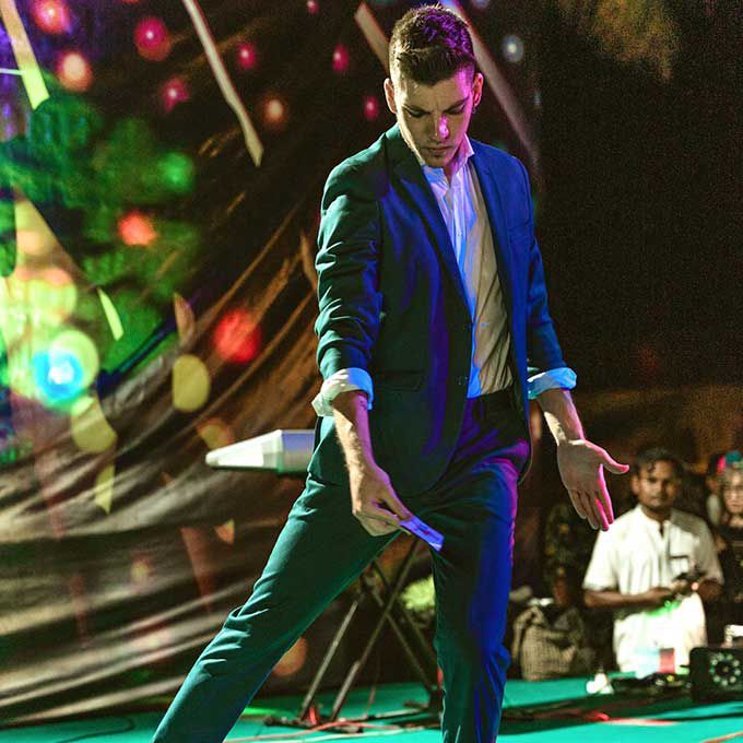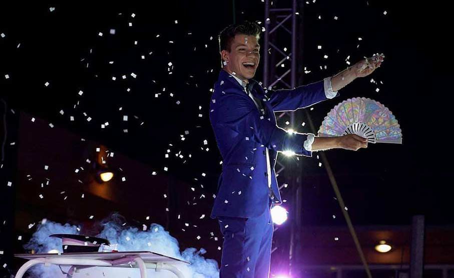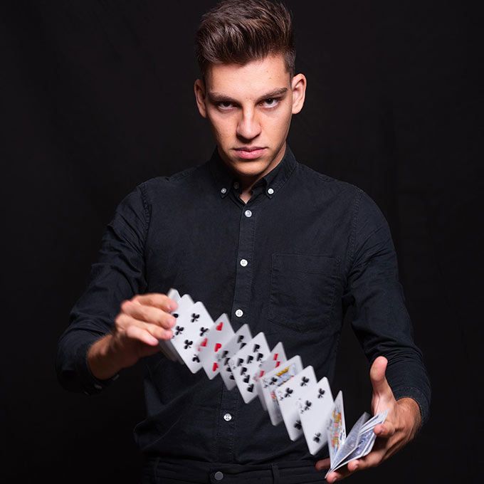 By incorporating card flourishing into his mix-and-mingle magic and stage shows, his performances become a captivating visual feast for guests