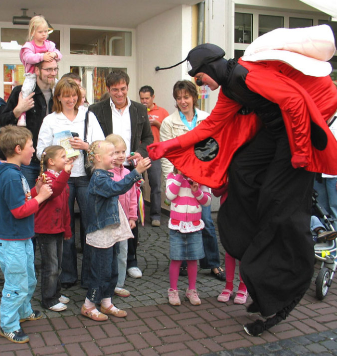 If you're interested in booking our marvellous and glorifying insect stilt walkers for your upcoming special event, contact any of our helpful Scarlett Entertainment team members who will be certain to assist you with your booking needs, and answer any question you might have.
