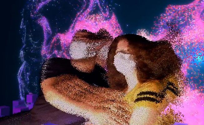 A family-friendly and unusual installation where visitors can create graphics and sound by touching each other on the arms and head