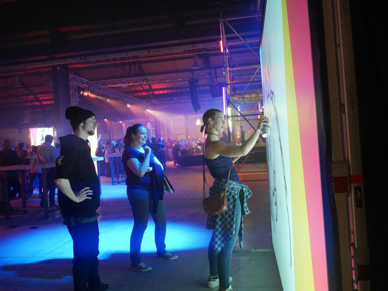 Our digital graffiti for events artists also provide spectacular digital graffiti demonstrations during events, parties, exhibitions and product presentations. Use this unique interactive entertainment to bring your brand to life live in a creative and inspiring way!