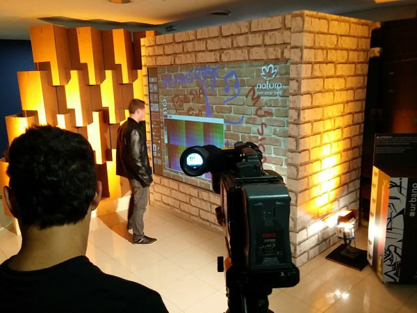 Our digital graffiti wall creates a unique interactive entertainment experience live at your event. Guests can use digital spray cans, stencils and a number of digital tools to interact with the digital graffiti wall to create or contribute to a custom work of art! Custom stencils and branded covers can be designed and created for attendees to play around with, and additional customisable options include branding of the base of the wall for enhanced brand visibility. Enabling event attendees to interact with your product or brand in an innovative way, this highly interactive digital display screen is a favourite choice for exhibitions and trade shows as well as corporate events and award ceremonies.