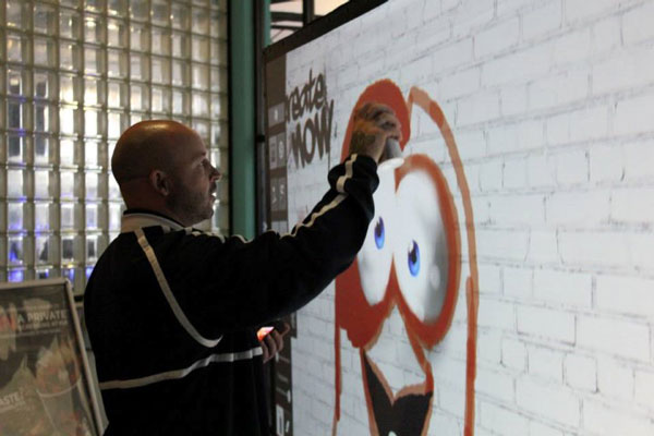 For events with limited space a smaller version of the wall is available and photo booth mode can be activated if you’d like to add an extra element to the interactive and combine live photos with live editing. The addition of a live demonstration by a professional graffiti artist also adds a touch of excitement to this interactive act.