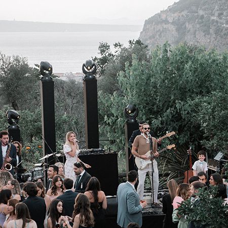 Based in Milan, our Italian cover band offers a trio performance with a DJ set, saxophone or percussion to suit larger after-dinner parties