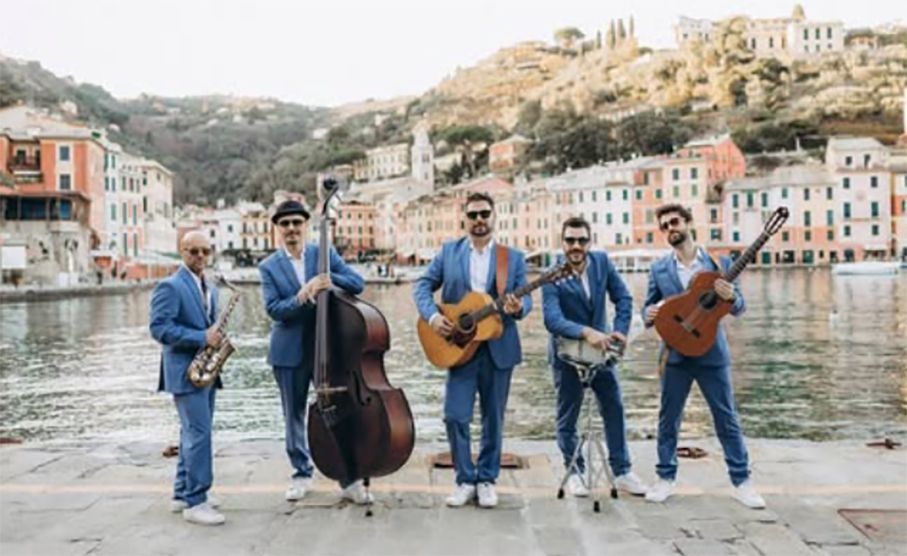 This Italian roaming band is made up of five talented musicians, playing the drums, double bass, guitar and saxophone