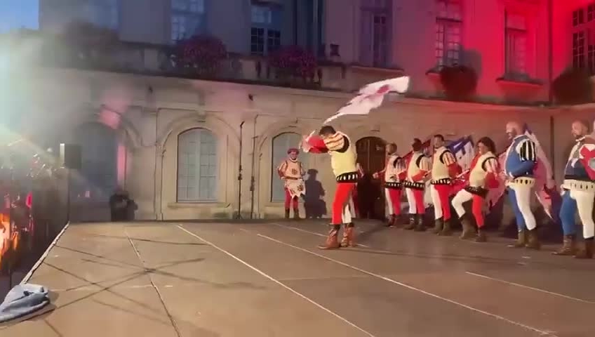 Stars of numerous football championships, these traditional flag wavers come with trumpet players and drummers