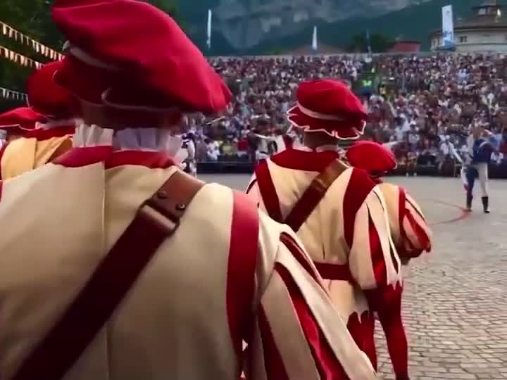 Their choreographed displays in the traditional costume of their home city create a visually colourful and stunning spectacle