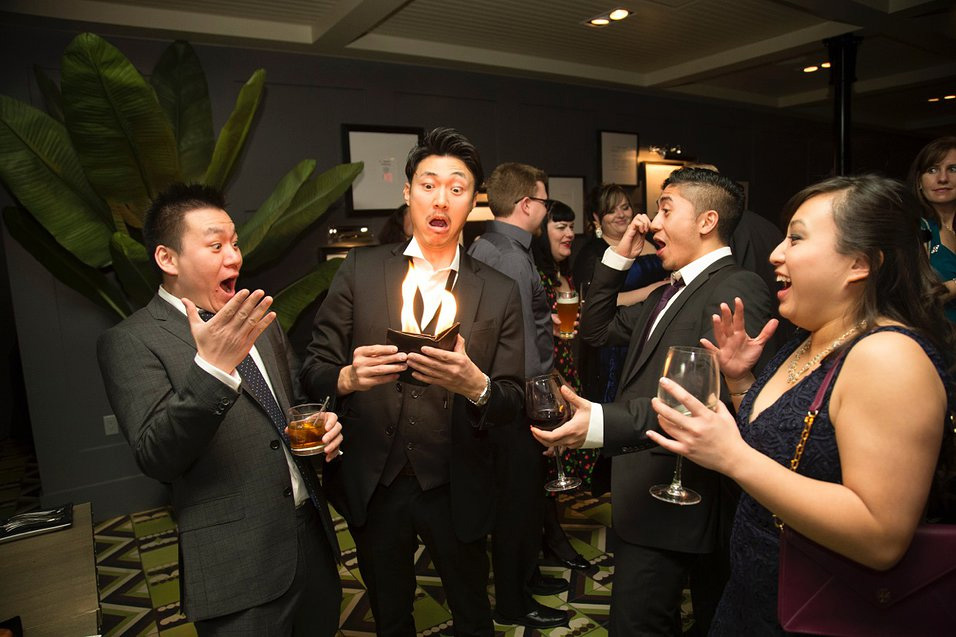 " I saw [Him] perform in a restaurant, and when it came time to look for entertainment for our event he quickly came to mind. I’ll admit that some people were not sold on the idea of a Magician for an engagement party event, but from what I originally saw I knew he would be a crowd favorite…and he was! If you’re ever looking for a unique and highly entertaining performance for any of your events, I’d certainly recommend giving him a call. He can customize his performance to fit a variety of circumstances, from staged events to crowd mingling magic (which is what he did for us), he’ll work with you to do what works best for your event! "