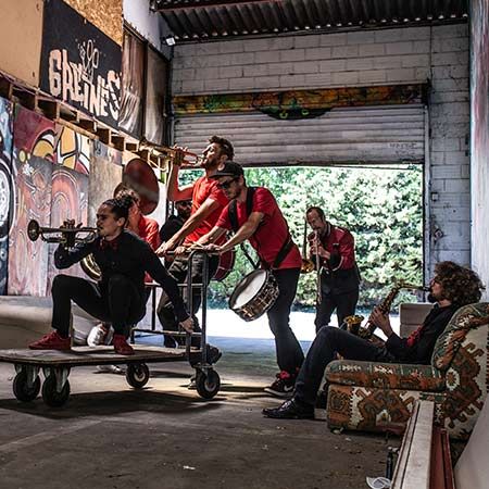 The perfect live music entertainment option for street celebrations, jazz festivals, private parties, themed occasions and many more, our dynamic marching band is guaranteed to liven up your party with their vibrant sounds, their infectious energy and their good vibes.