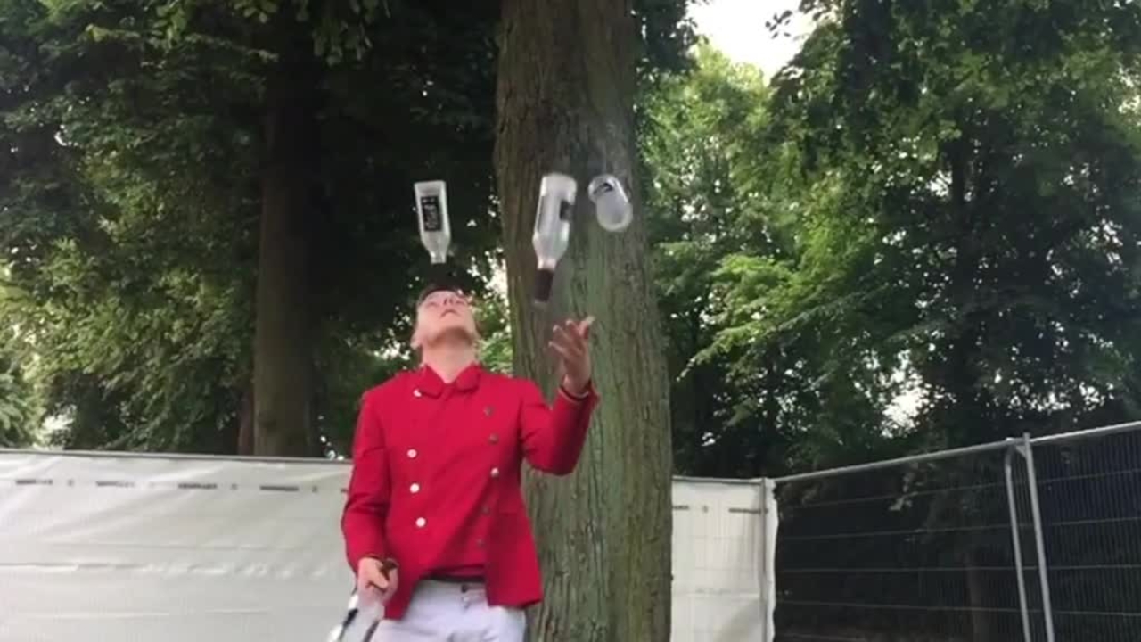 His juggling skills include balls, clubs, rings, hats, and contact juggling and his chic gentleman-style routine with bottles is always a big hit