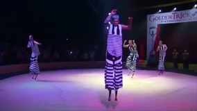 Highly experienced circus artists perform stunning jumping stilts, flips, and tricks