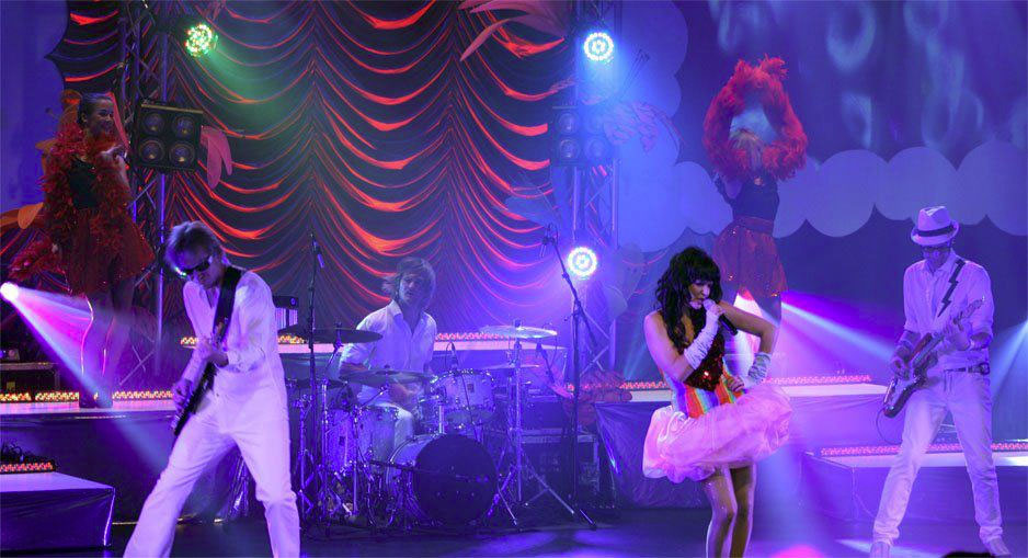 The look, the colourful wigs, the custom made costumes, ...the 'clouds and candyfloss' stage set, the amazing dancers, the musicians, the DJ and the songs performed to perfection is what makes this concert as close to the real thing as you're going to get.