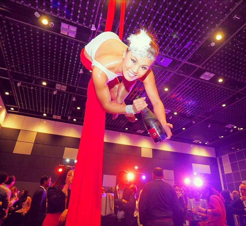 Are you bored of the regular and lacklustre drink servers and want them far from your event? Look no further than our dazzling LED aerial bartender. For an unforgettable entertainment choice, our beautiful aerialist will provide drinks to guests while hanging from a sensational LED hoop while performing various aerial tricks. Our aerial champagne pourer will instantly become the highlight of your event as guests interact with our LED aerial act making her a great drink event entertainment option. Our aerial hostess will provide unique photo opportunities and will guarantee guests are always keeping their eyes glued to our aerialists angelic movements.