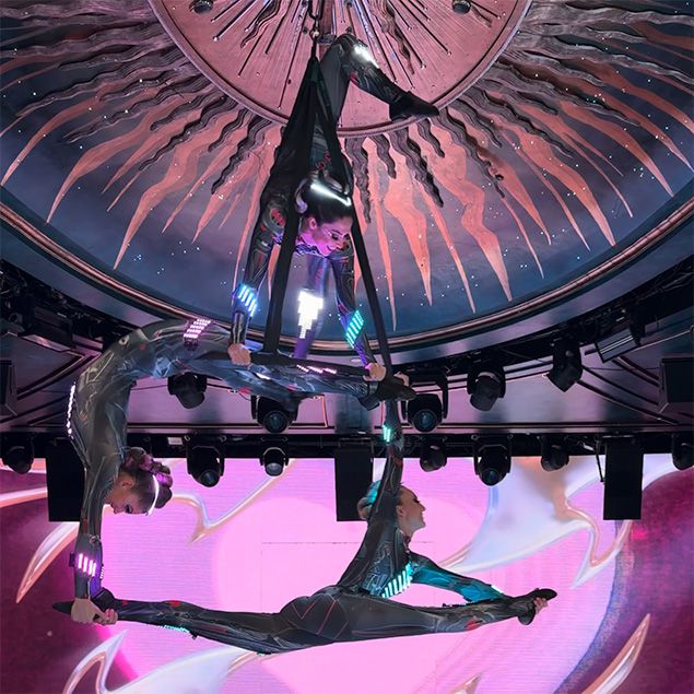 This high-energy aerial trio delivers stunning aerial artistry with precision, power, and captivating, bold stage presence throughout each show